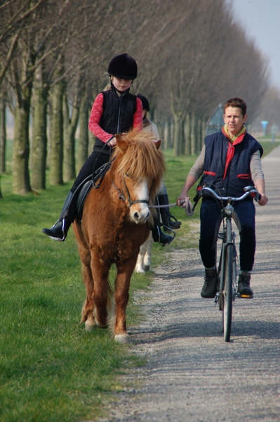 Na een uurtje rustig stappen kwamen we daar aan en deden de boodschappen in onze zadeltassen. Dit is een ritje om nooit meer te vergeten! Thuis de paardjes lekker verzorgd en na een lekker bakje thee snel de mooie foto’s bekijken. Zo zo zie maar weer, de vier benen winnen het van de vier wielen!